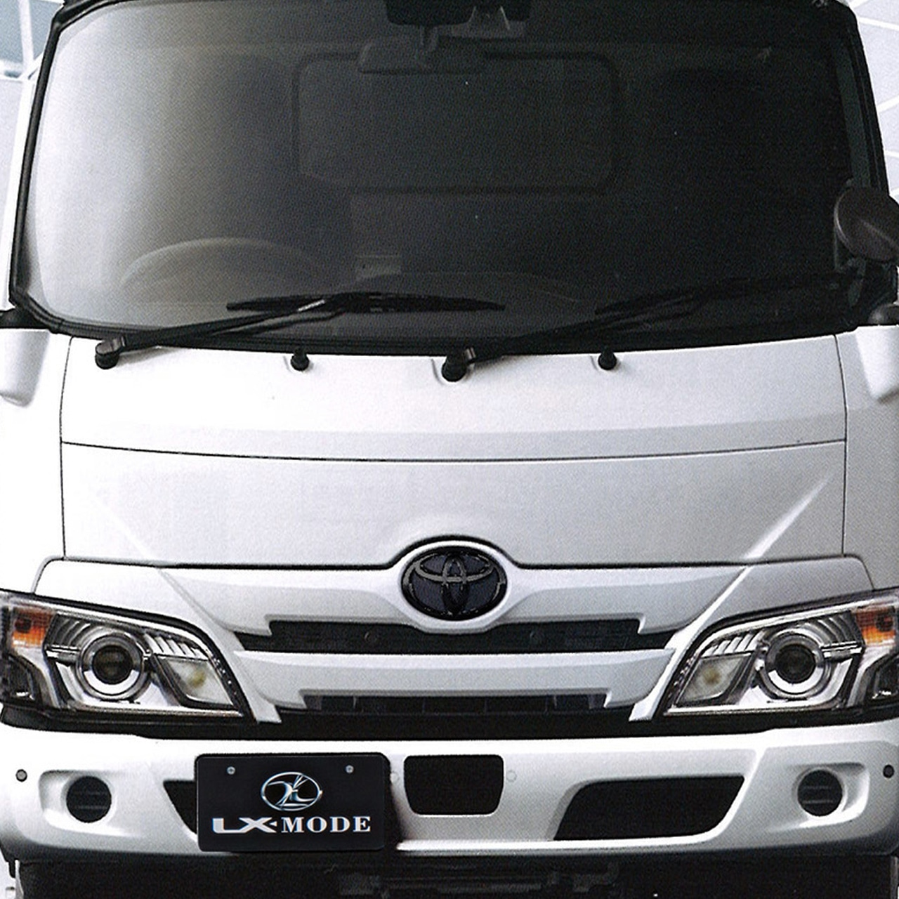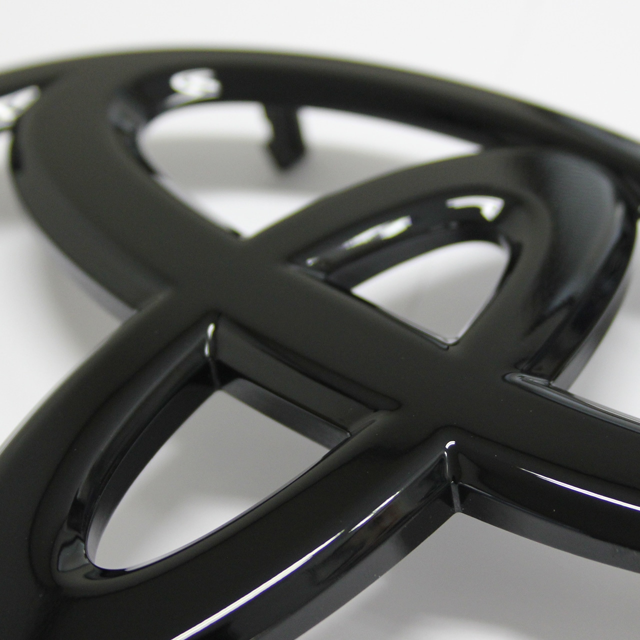 ■純正ではクロームメッキになっているフロントフェイスのトヨタマークをブラック塗装することで、代り映え感を演出。